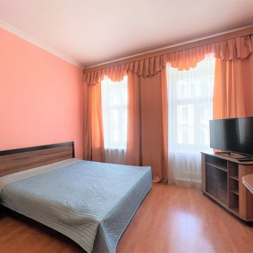 Полностью оборудованные апартаменты подходят для комфортного проживания до 6 человек. Спальные места включают 2 двуспальные кровати и 2 раскладных двуспальных дивана. В санузле — душевая кабина, туалет, раковина, зеркало и фен. В апартаментах предусмотрены: высокоскоростной Wi-Fi, ЖК-телевизор, стиральная машина, утюг, гладильная доска и сушилка. На кухне есть все необходимое для готовки и мытья посуды — микроволновая печь, плита, холодильник, чайник, вытяжка, набор посуды.