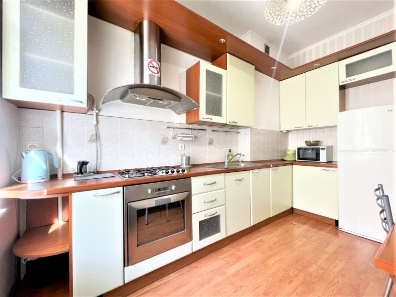 - Оборудование: гладильная доска, духовой шкаф, микроволновая печь, набор посуды, плита электрическая, стиральная машина, сушилка для белья, телевизор, утюг, холодильник, электрочайник